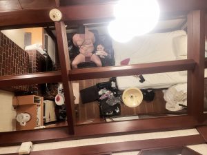 こちらの写真もいろんな角度に貼られた鏡にいろんなふうに写ってます。